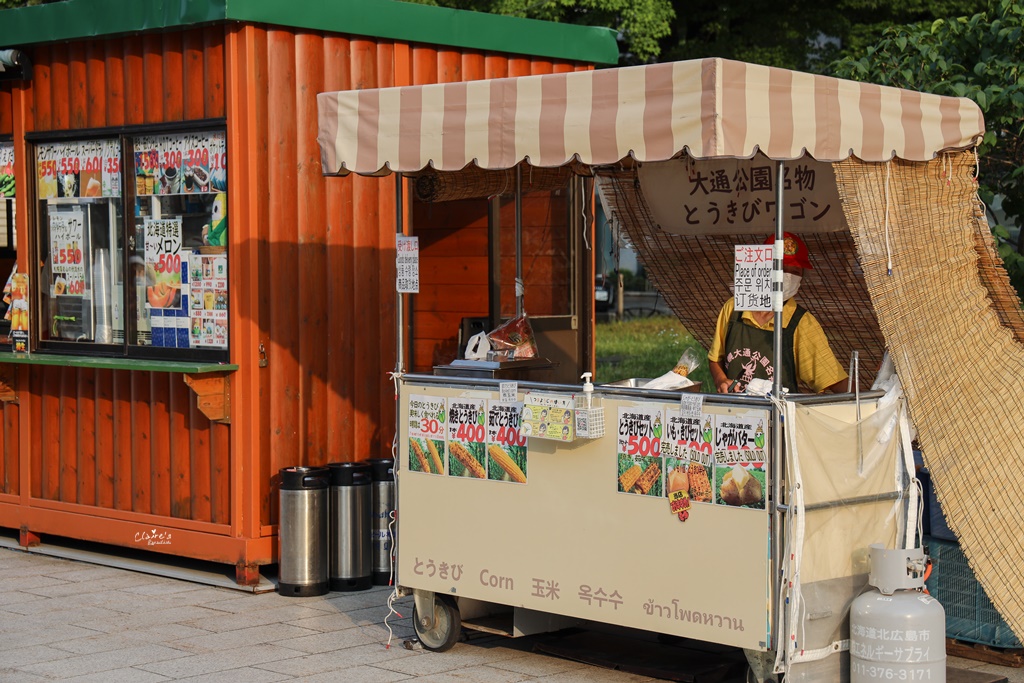 札幌市區有不少景點可以逛,例如札幌電視塔、札幌時計台、大通公園、狸小路商店街…等,在安排行程的時候,我發現大通公園裡竟然有賣烤玉米,非常愛吃玉米的我,馬上把尋找烤玉米列入第一天的重點行程,說什麼都要吃到!