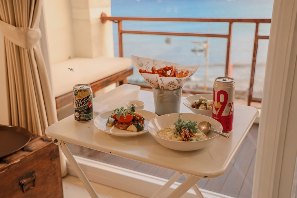 這個海景、這個陽光絕對不是P上去的,現場看就是這!麼!美!!! 更棒的是海景房都附有私人陽台,不想去海邊人擠人的話,站在陽台就可以看海了。