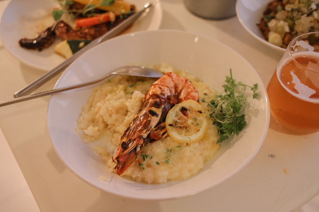 檸檬大蝦燉飯是我滿推薦的一道主菜,米飯的中間還帶有些許米芯,是比較正統的做法,但是不會硬到難以入口。而檸檬酸酸的味道,讓燉飯的口味變得清爽許多,會讓人一口接一口的吃,蝦子就不用多說,肉質飽滿而且很甜。