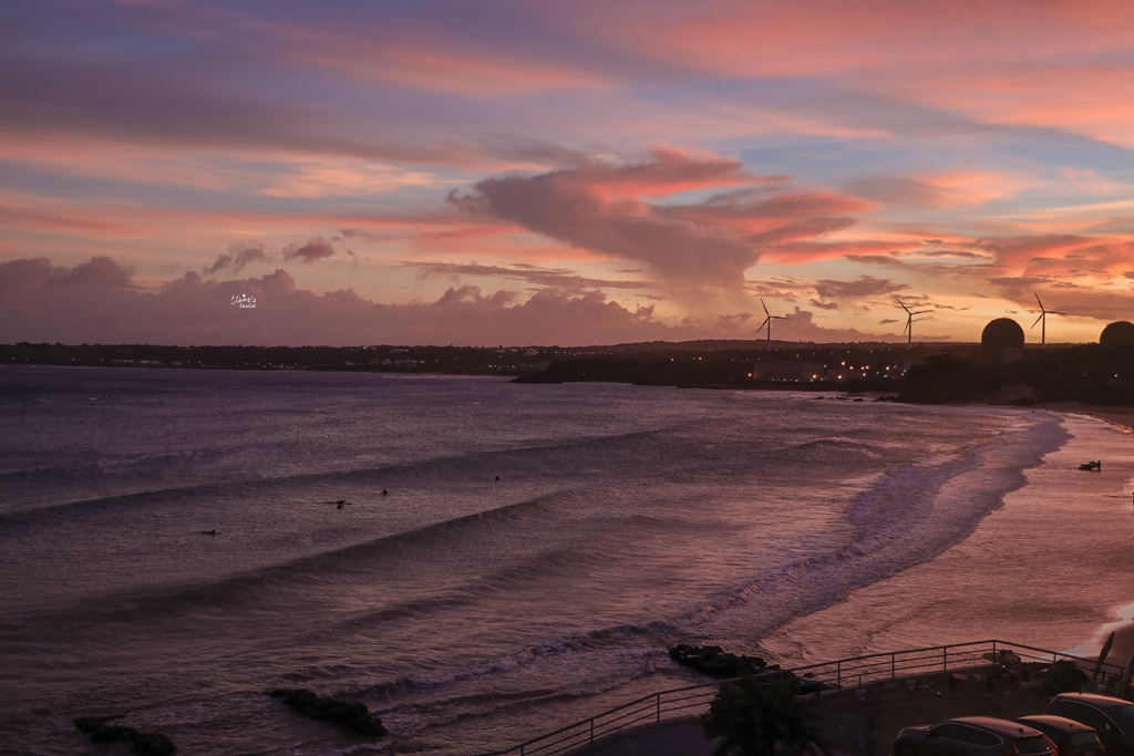 夕陽西下的這段時間,天空的色彩相當豐富,同時有藍、橘、粉、紫,而且每隔一段時間就會有變化,讓我吃到一半忍不住一直拿相機到陽台拍照(在房間內用餐的好處),最後就以南灣的晚霞作為本篇的結尾吧!