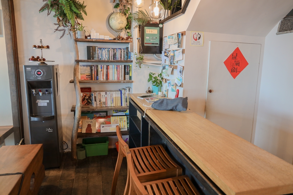 櫃台旁有飲水機、還有DVD與書可供免費借閱,由於房內沒有第四台,如果想看電視的話就只能借DVD了。