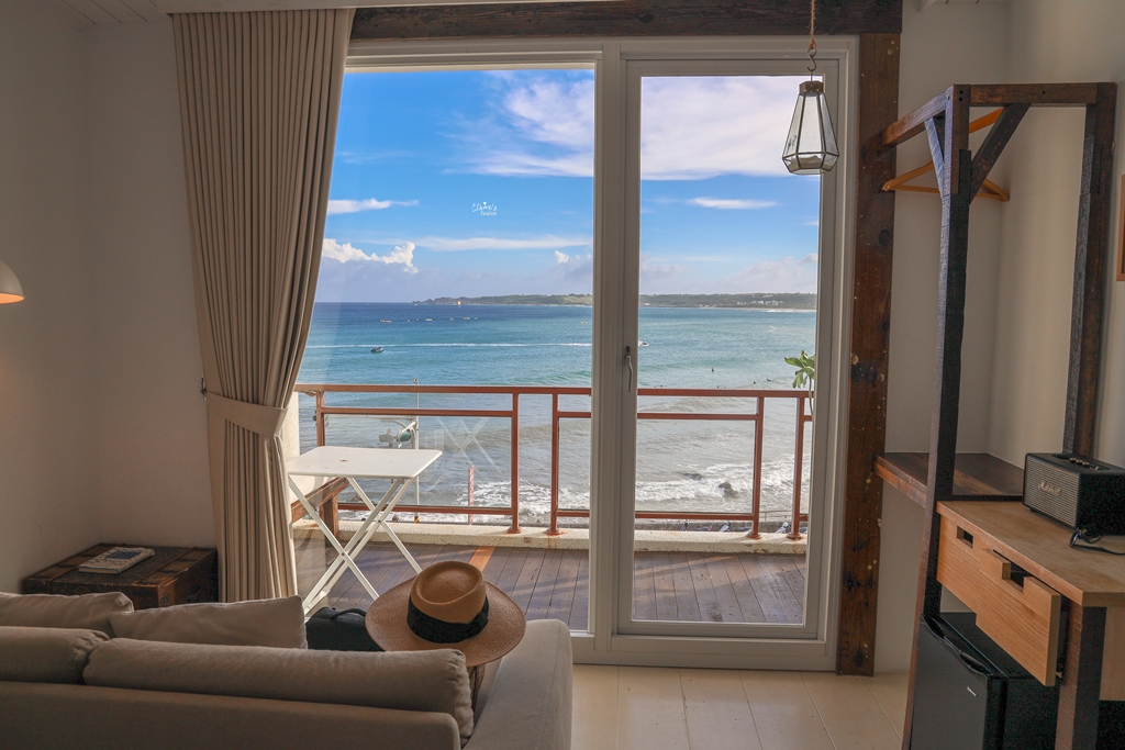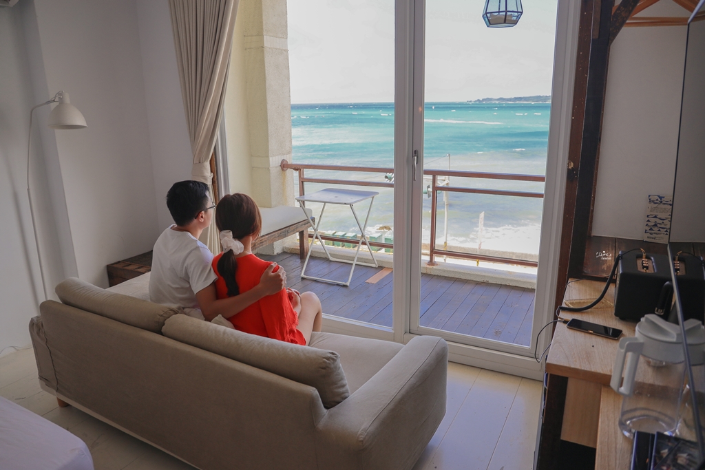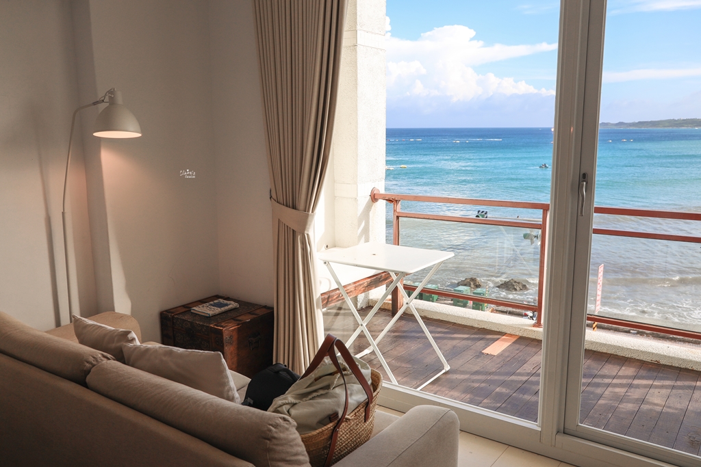 我們住的是位在三樓的「靛藍海景房」,這裡有分成海景房與山景房,雖然山景房的價位稍微低了一些 (海景房與山景房一晚的價差最高約一千元左右),但是來這裡不住海景房就真的太可惜了!!