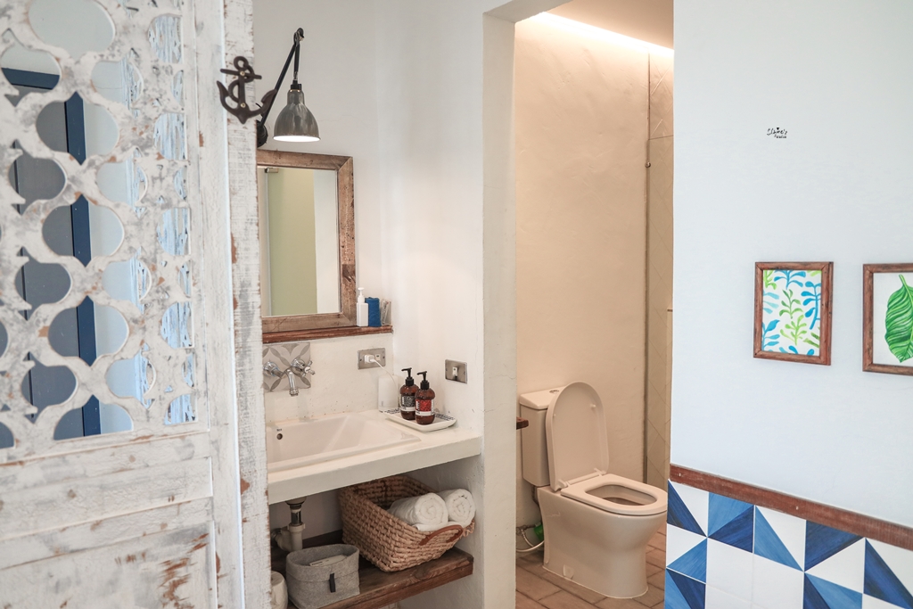有些偏向度假風格的旅店,衛浴空間往往是開放式的,有時難免會覺得有點尷尬…但是我們住的這間則完全沒有這個問題,廁所以及乾濕分離的浴室是有門可以關起來的,若想在浴缸泡澡,也有浴簾可以使用,就不用擔心會很害羞了。(查詢即時房價:Agoda / Booking.com)