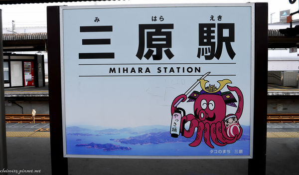 三原市的特產是章魚,我們回程時有出站去附近繞了一下,隨處可見各式章魚的圖案。
