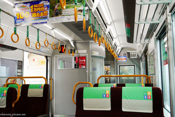 JR吳線的列車,冷氣很涼、很乾淨舒適,而且人也不多,我們一向不喜歡人擠人的地方,這次去廣島玩就覺得很不錯,可以放慢步調、也不用擔心車子會擠不上去什麼的。