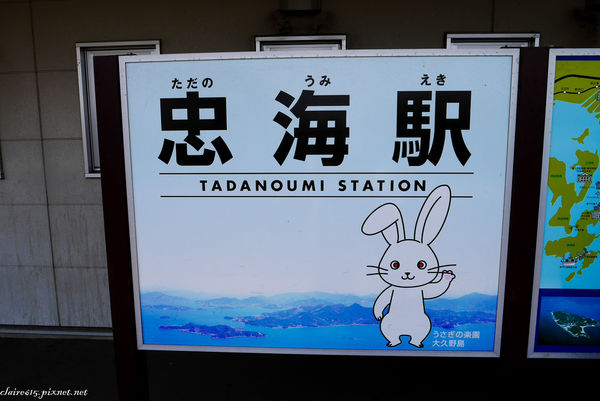 一個小時過後我們終於抵達忠海站,有小兔子圖案的站牌超可愛的!!而且這個圖案可以對應到上面那張地圖(還有三原站的章魚也是!)