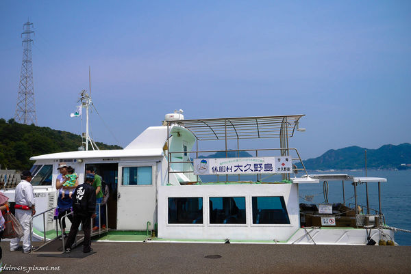 從廣島出發的話,可搭乘新幹線到三原站(30分鐘),再轉乘JR吳線到忠海站(20分鐘),出站後右轉,跟著指標(或人群)直走步行約5分鐘抵達忠海港,買好船票搭上渡輪,約15分鐘後就抵達大久野島了