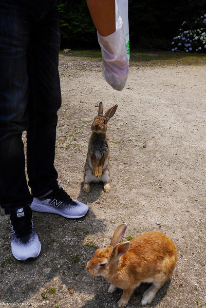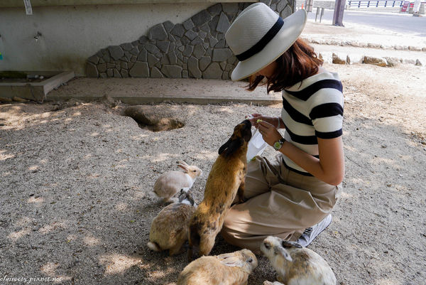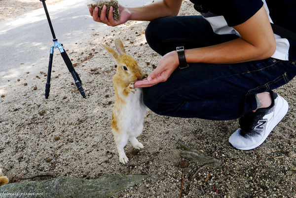 大久野島的交通並不如想像中的複雜,只要轉乘時間有規劃好,不會講日文也是OK的,這次也看到很多歐美觀光客帶著飼料來餵兔子,對於喜愛兔子或是小動物的人來說,這裡真的很值得一遊,只是太陽真的很大…水要準備充足外、防曬一定要做好。而且我一邊餵兔子一邊要拍照,不停起立蹲下的結果就是隔天嚴重鐵腿(平常沒運動的後果QQ)下次若還有來廣島一帶,我一定還會再帶滿滿的食物來拜訪可愛的兔兔們的!