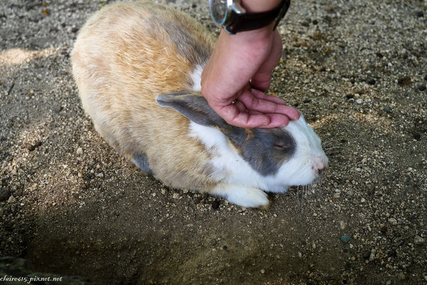 而且島上的兔兔都不怕人,蹲下來餵食的時候,他們還會直接爬到你身上搶食物吃,但他們吃完東西後就拍拍屁股走人了,不太願意跟人有接觸,少數有幾隻會願意給摸,可以趁他們剛吃飽心情好的時候對他們偷偷上下其手,請記得動作要輕柔,避免他們受到驚嚇或是受傷就不好了。