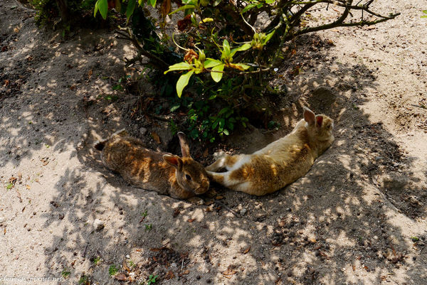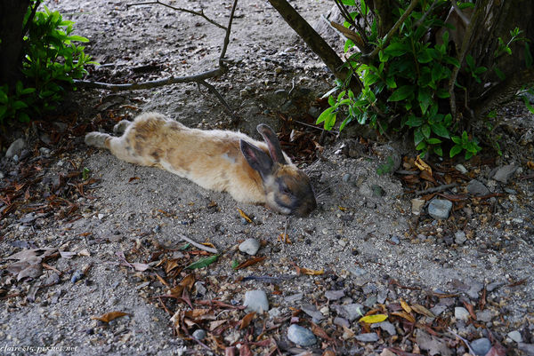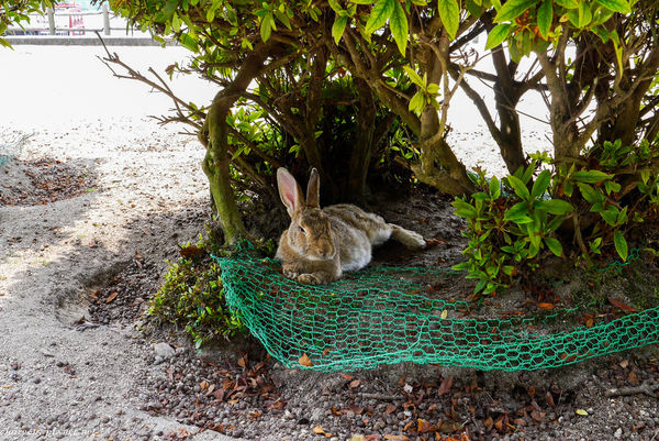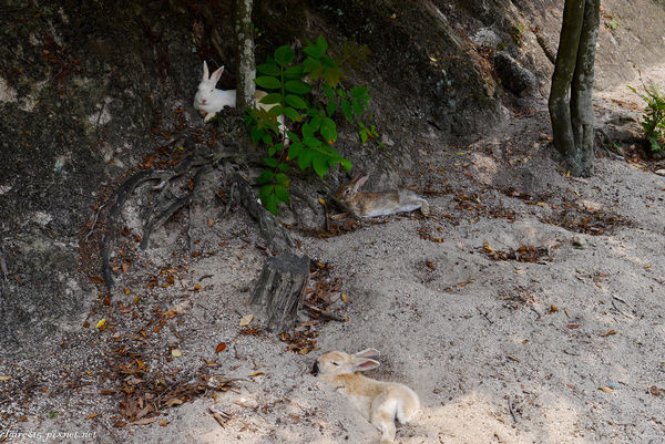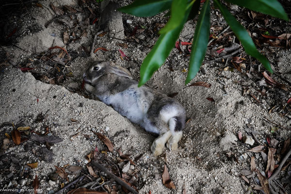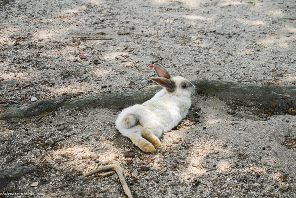 躲在樹叢底下乘涼的胖兔子,往島上裡面走會發現遊客比較少,大家有看到落單的兔子可以給他們一些食物。