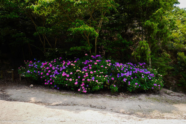 六月是日本繡球花盛開的季節,本來沒有預期會在這看到,意外的在休假村附近的一個角落也遇到了繡球花叢。
