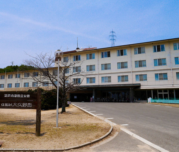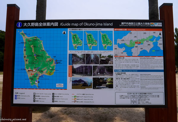 大久野島的地圖以及休暇村,我們這次沒有入內參觀,據說裡面有餐廳可以吃個簡單的午飯,還有販賣飼料等等,下次來的話會考慮在島上住一晚,這樣就可以跟兔子多相處一些時間!!