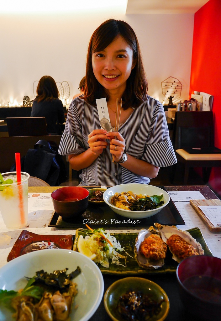 我們點了一個牡蠣飯與特選牡蠣屋定食,特選牡蠣屋定食算是隱藏版菜色(但有列在官網的菜單裡),點餐時店員也會特別推薦這道。套餐包含炸牡蠣、烤牡蠣、半份的牡蠣飯、醃漬牡蠣、牡蠣味增湯,就是各種牡蠣一次滿足的概念~