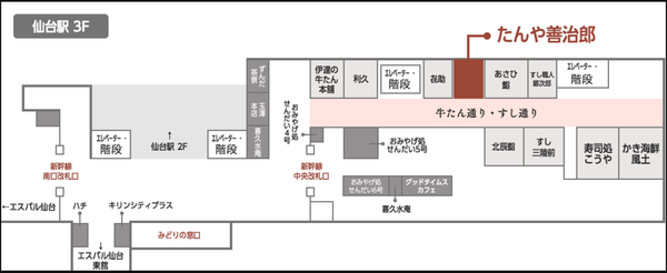 地址:宮城県仙台市青葉区中央1-1-1 JR仙台駅 3F 牛たん通り