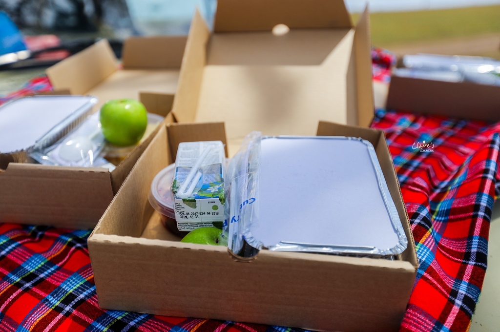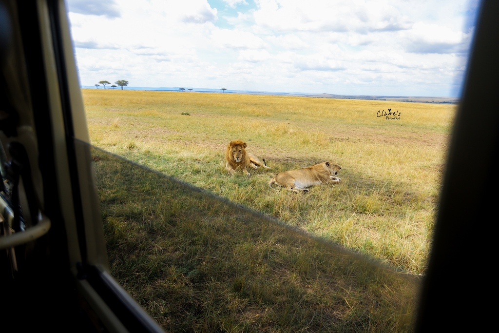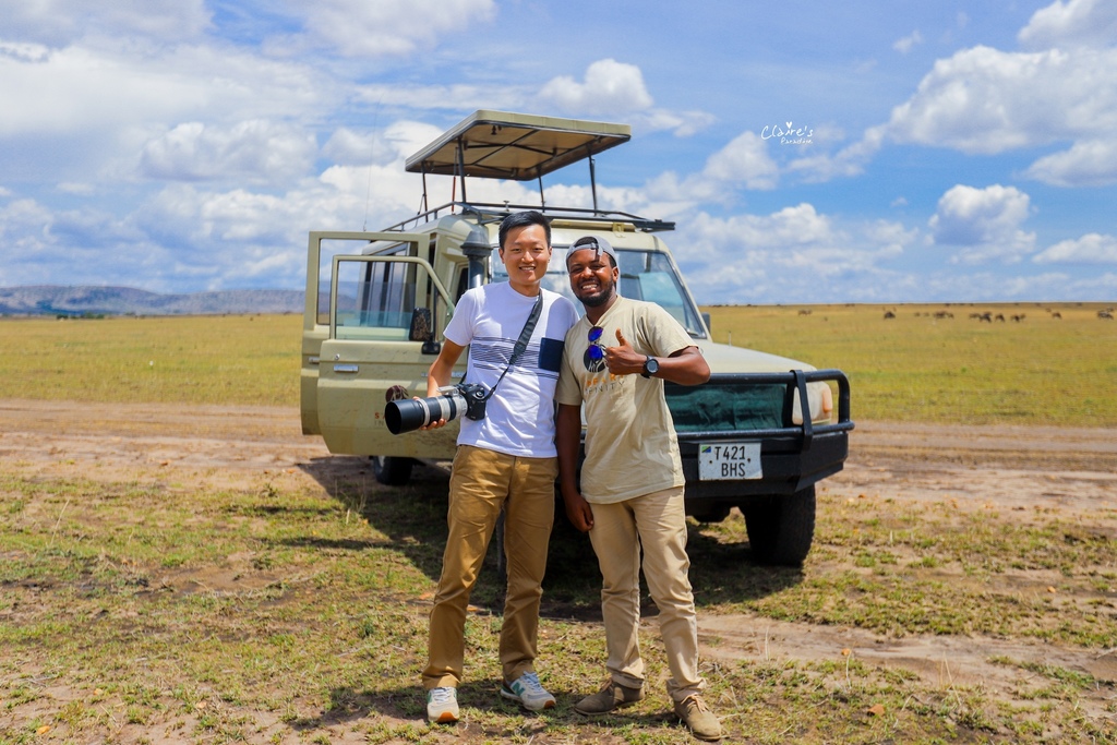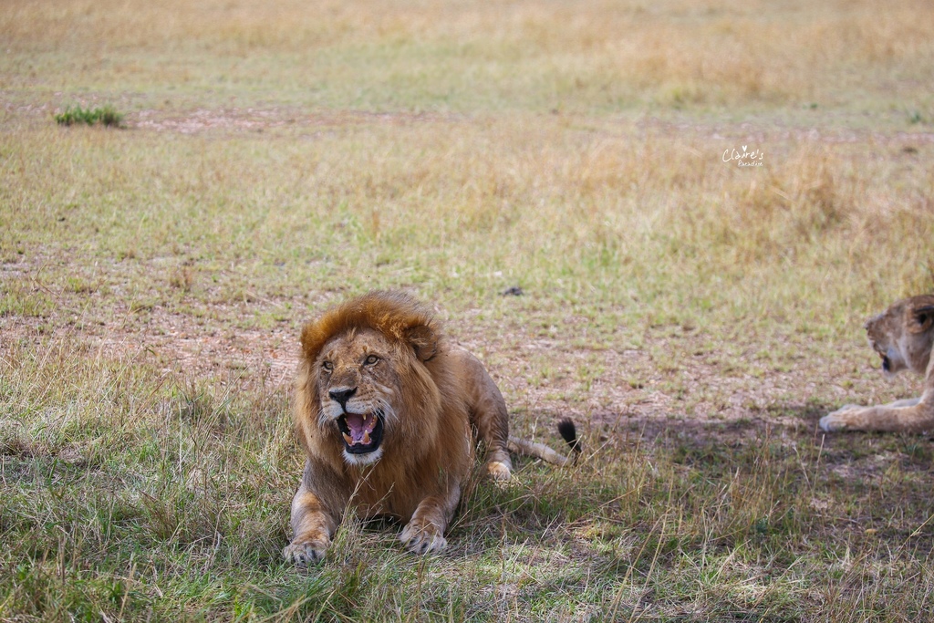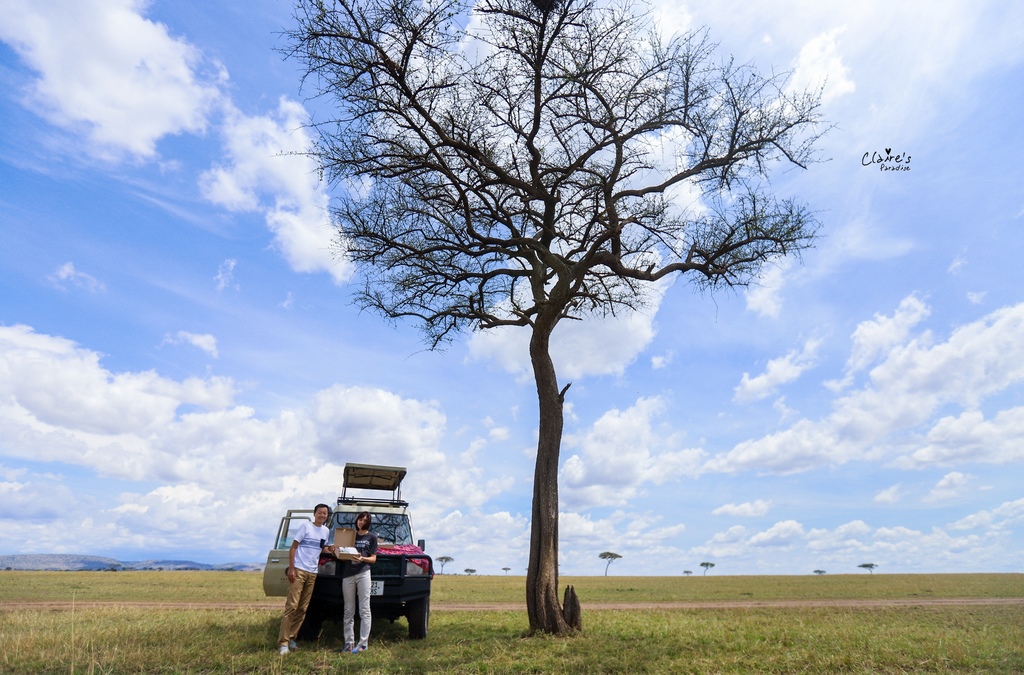 能夠跟我的好旅伴站在這片距離台灣9800公里遠的東非大草原吃午餐(雖然食物不美味),一邊跟Kelly聊著不同國家與文化之間的一些差異及看法,真的是很令人難忘的回憶!更重要的是…就在我們準備開始吃的時候,Kelly突然察覺遠方有動靜,用望遠鏡確認後,發現是一對獅子正在遙遠的那端盯著我們,但是獅子能透過人類身上的味道得知我們並不是牠們的食物,只要我們不要做出攻擊的行為,獅子也不敢輕舉妄動,因此我們就這樣跟牠們一起共度了美好的午餐時光~