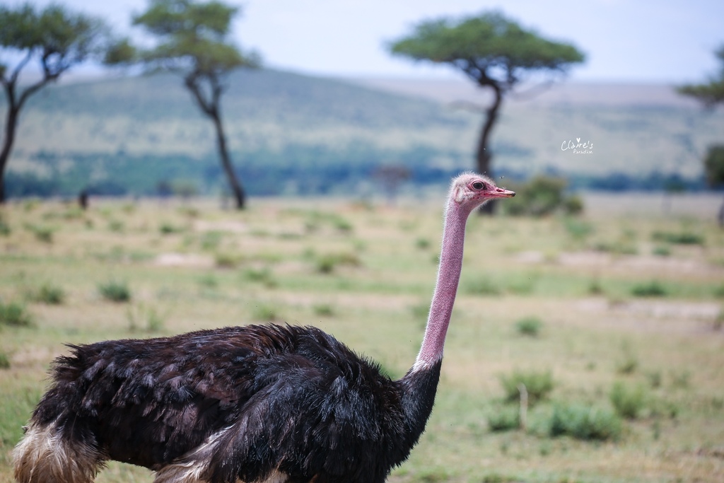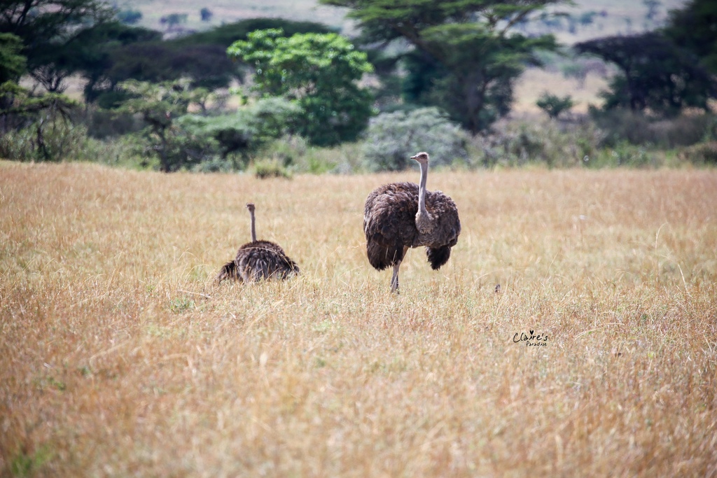 我心目中非洲代表性的鳥類─鴕鳥!!把鏡頭拉遠之後發現有三隻,不知道牠們是一家人還是其實是三角關係(又開始亂編故事)