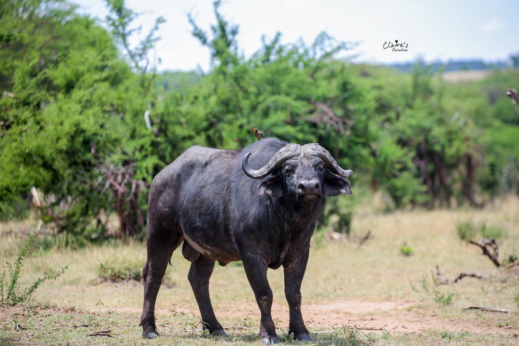 站在牛背上的啄牛鳥(Oxpecker),牠們會依附在長頸鹿、大象、水牛、羚羊等大型草食性動物身上,並著食其身上的寄生蟲。