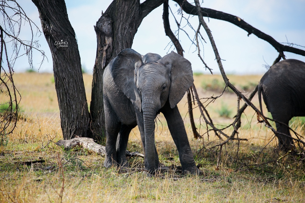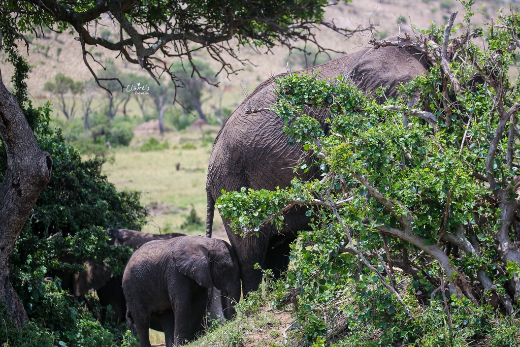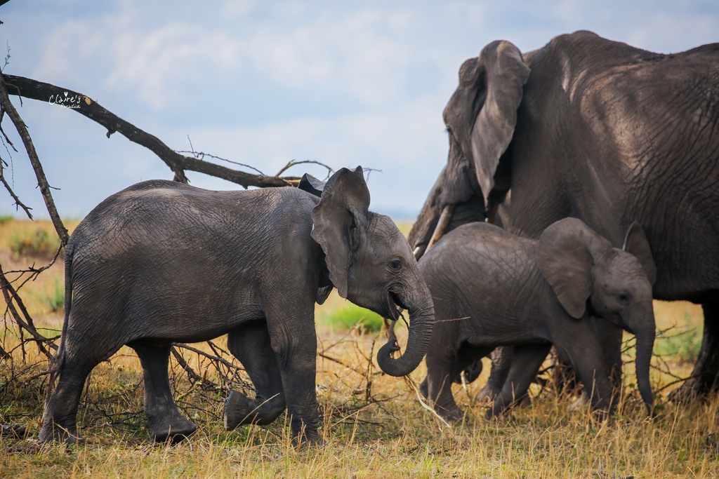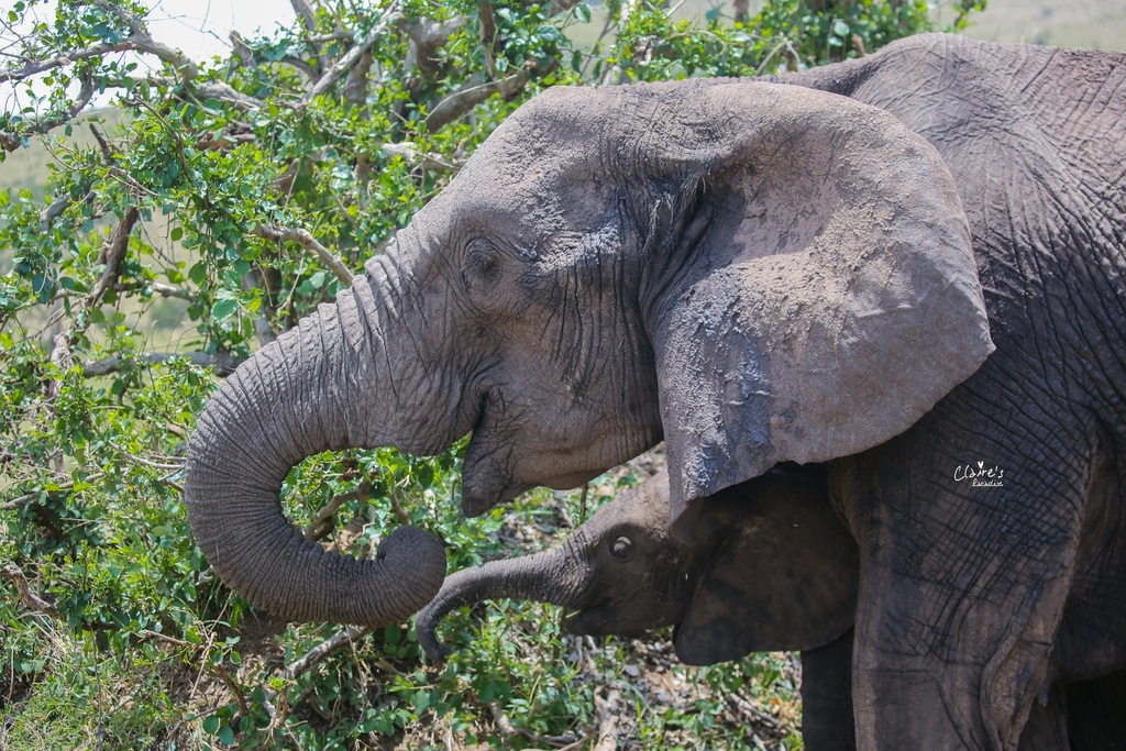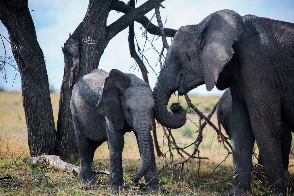 大象媽媽帶著小象覓食中,來到坦尚尼亞的這一星期看了不少次大象,很幸運的每次都能近距離觀察牠們。