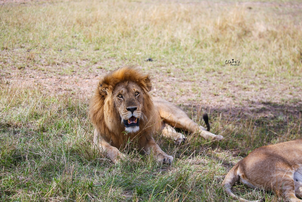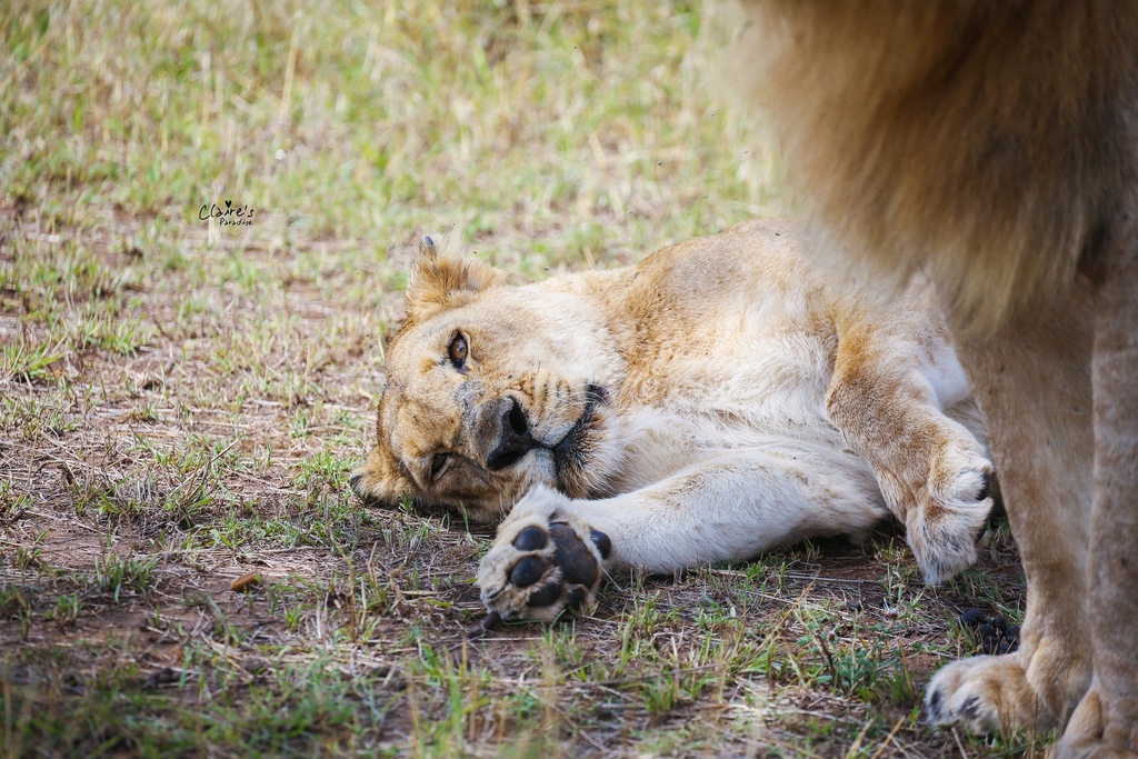 吃飽喝足後,Kelly提議不如去看看那兩隻獅子吧!當車子靠近的時候,牠們正懶洋洋地趴在地上休息…