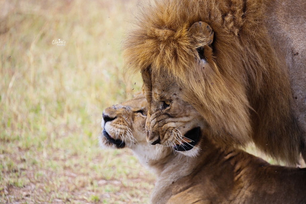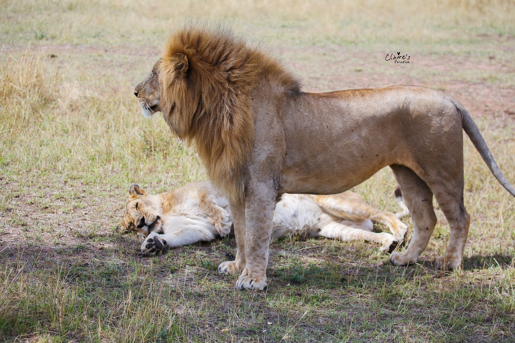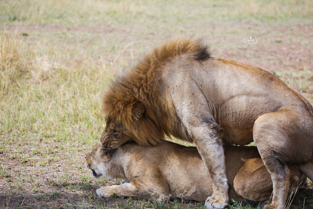 也許是發現我們只是在捉弄牠,完全不會對牠造成威脅,所以獅子一轉頭就又開始交配了。