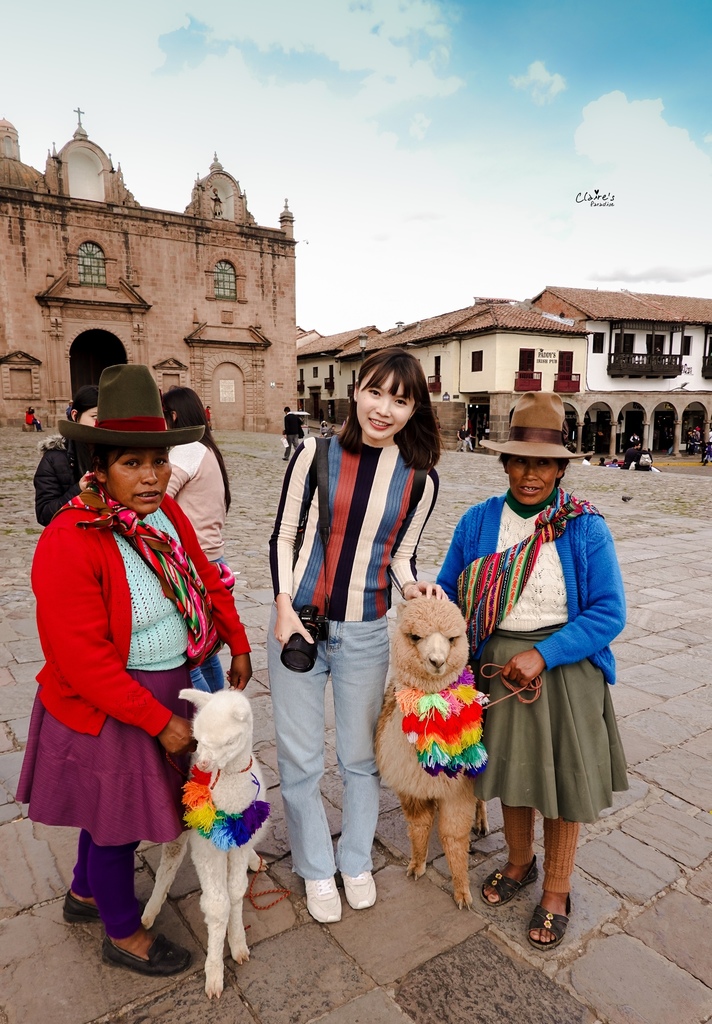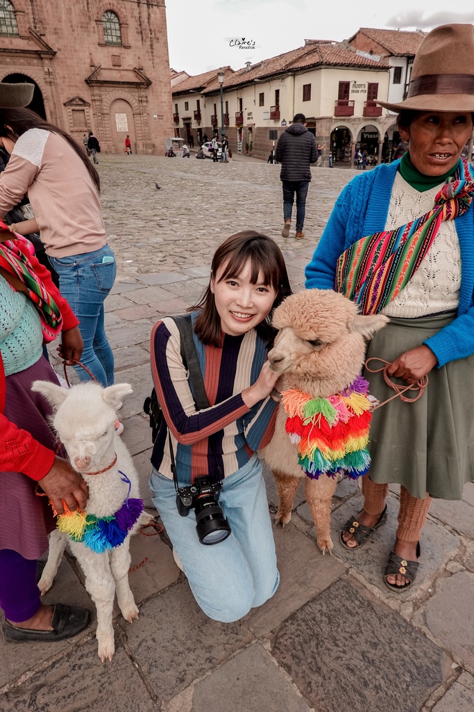在教堂與武器廣場周遭,時常可以看到穿著傳統服飾的婦女牽著打扮花俏的羊駝走來走去,看到可愛的羊駝,我馬上就衝過去了~~~好想綁架一隻回來!!拍照的費用沒有一定,建議一次給5~10 Sol。
