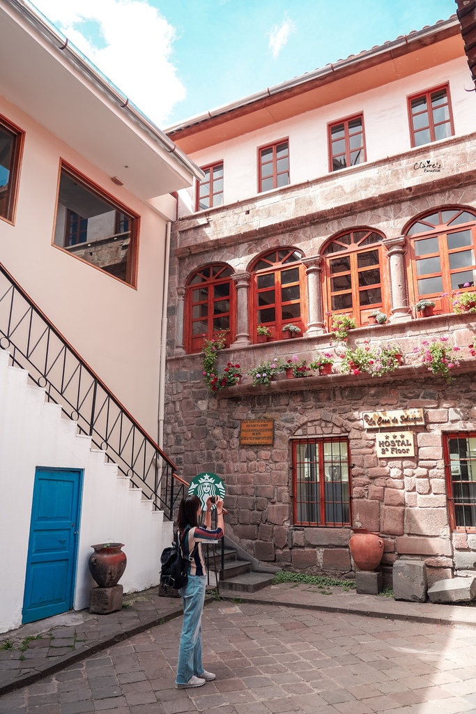我非常喜歡這個有點隱密的小庭院,那時剛好沒什麼遊客,我們在這裡拍了好些照片才滿足地上樓。在這家星巴克可以買到庫斯科跟祕魯紀念杯,內用的位子還不少,有消費的話也可以獲得免費wifi,但因為趕著去Sacsayhuaman,我們就沒有多做停留了。