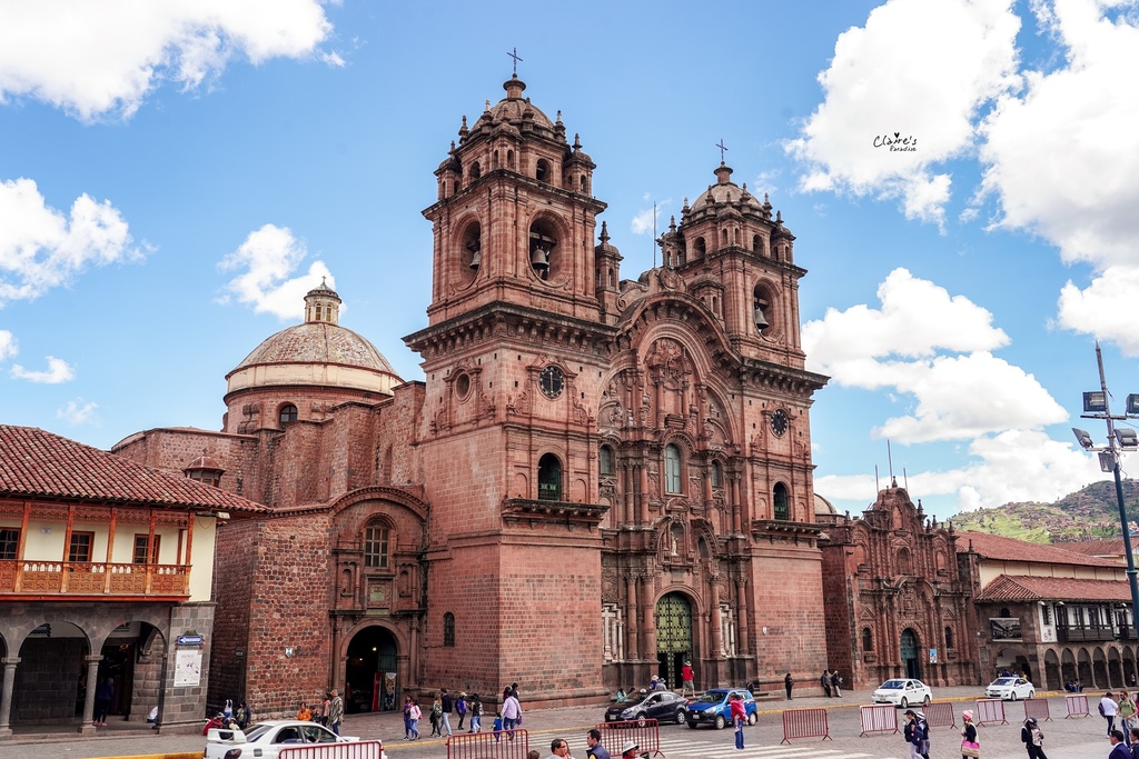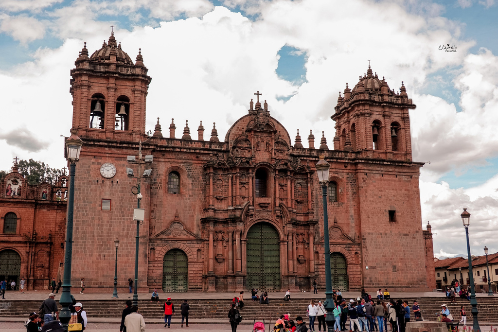 除了噴水池,武器廣場的另一個著名地標就是巴洛克風格的庫斯科主教座堂(Catedral Basílica de la Virgen de la Asunción),於1559年開始興建,耗時100年才完工。我們並沒有入內參觀,反倒把目光全部都集中在教堂前方的羊駝身上了。