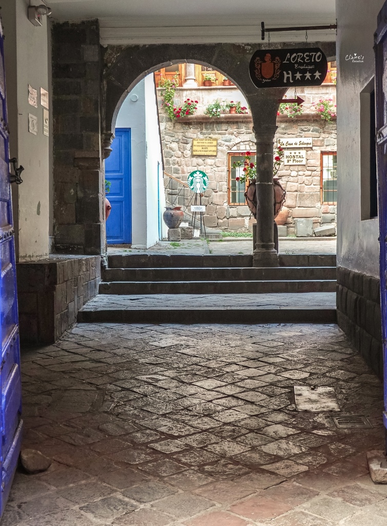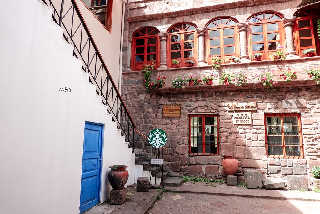 星巴克在二樓,隔壁是一棟外表暨可愛又復古的民宿Loreto Boutique Hotel,上網查了照片,發現客房內竟然還有印加石牆,一晚的房價也不會太貴,已經列入下次來祕魯的住宿清單裡了。