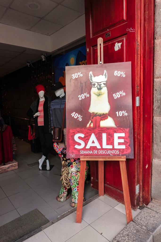 這裡還滿流行路邊推銷的…我們在庫斯科的三天裡,每走幾步路就會遇到旅行社、餐廳、賣紀念品與賣畫的小販、甚至是按摩店的員工上前兜售。一開始還很疑惑,祕魯的按摩特別有名嗎?後來當我們經過這幾天早出晚歸又高山症的日子之後,終於了解為什麼這裡按摩的行業這麼興盛了,疲倦的旅人確實很需要紓壓一下~~~