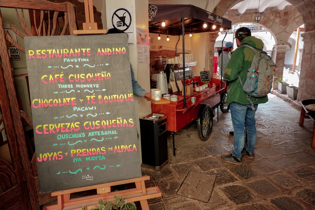 那時不知道為什麼就是覺得一定要找時間坐下來好好喝杯咖啡,於是在我們要去馬丘比丘的那天上午,找了一間看起來不錯的咖啡廳,在那裡享受了半小時的咖啡香與南美洲的陽光。(沒錯…只有半小時,時間真的很不夠用QQ)