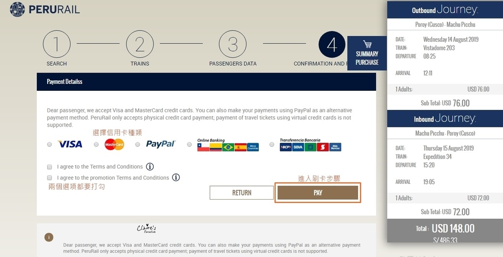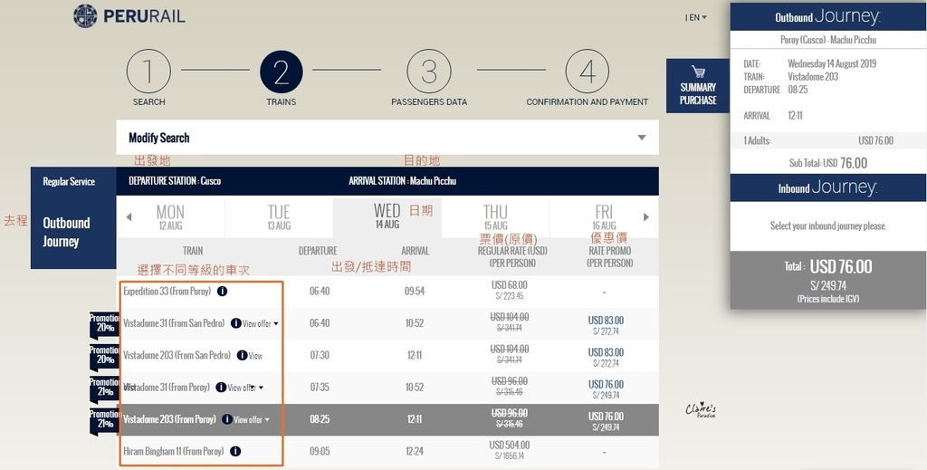 我們來回都是搭PeruRail,所以底下的購票教學將以PeruRail為範例。