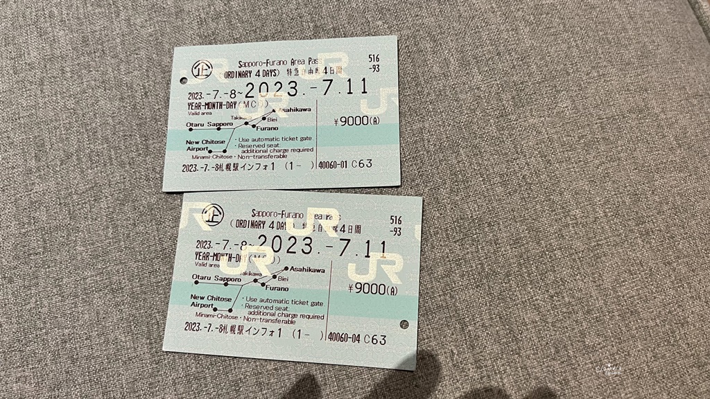 北海道有好幾種不同的交通票券可以購買,考量到我們的行程都是集中在札幌、旭川、富良野、美瑛,因此我選擇事先在Klook購買 JR北海道札幌 – 富良野區鐵路周遊券(4日),金額是10,000日圓,台幣約1,900元左右。到日本後,再持護照與電子憑證,去JR車站的服務處兌換實體車票即可。