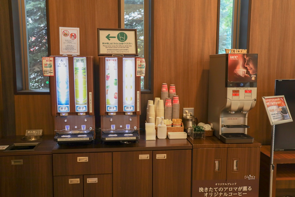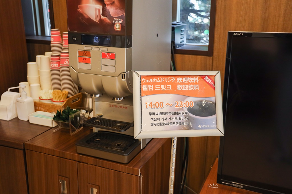 在每天的下午兩點到晚上十一點,大廳還提供了免費的飲料,有咖啡、日式綠茶、果汁。