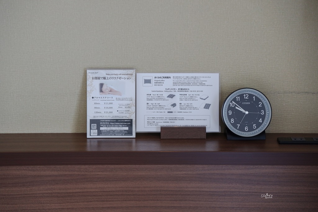 這裡的枕頭很特別,是兩截式的,一截是軟的,另一截則是硬的,床頭有一張使用說明,可以自行選擇要睡哪一面。