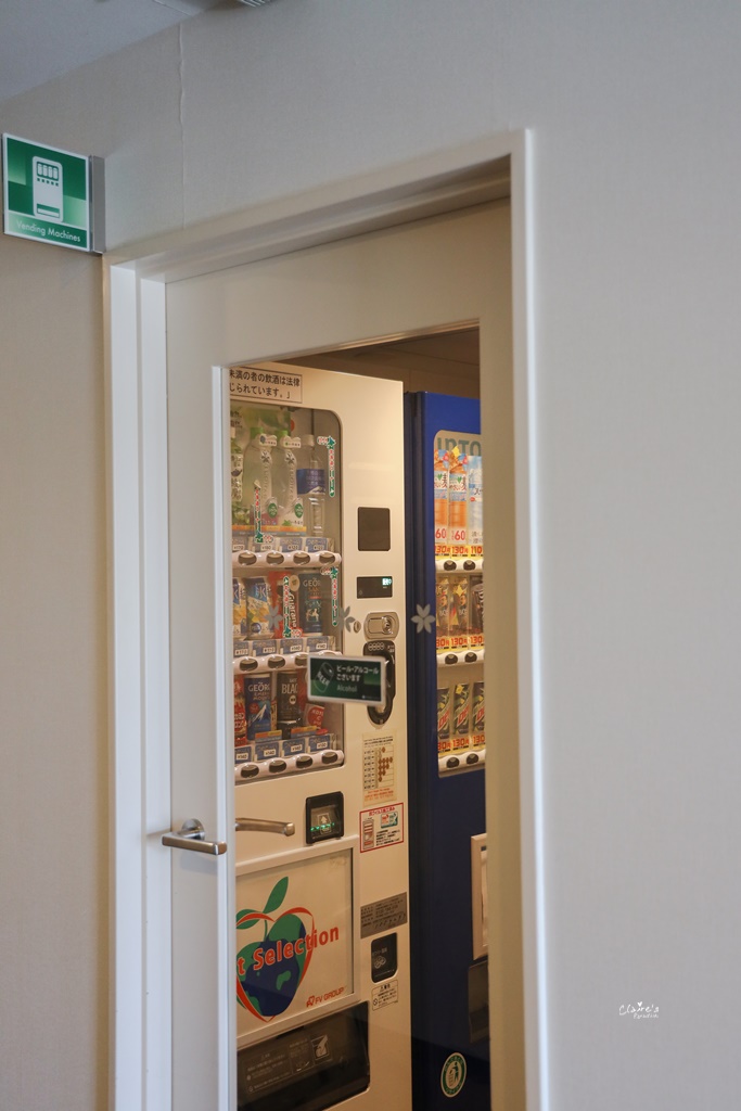 在房間外面有自動販賣機,販售軟性飲料、啤酒、礦泉水,另外也有微波爐跟製冰機可以使用。